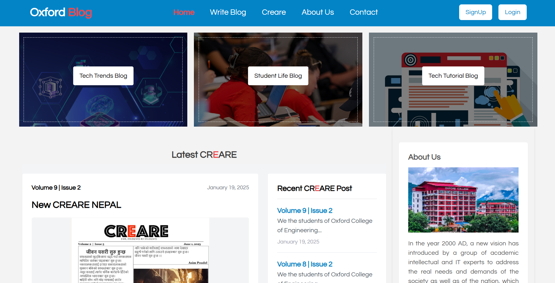 A college blogging platform designed for academic sharing and collaborative content management.