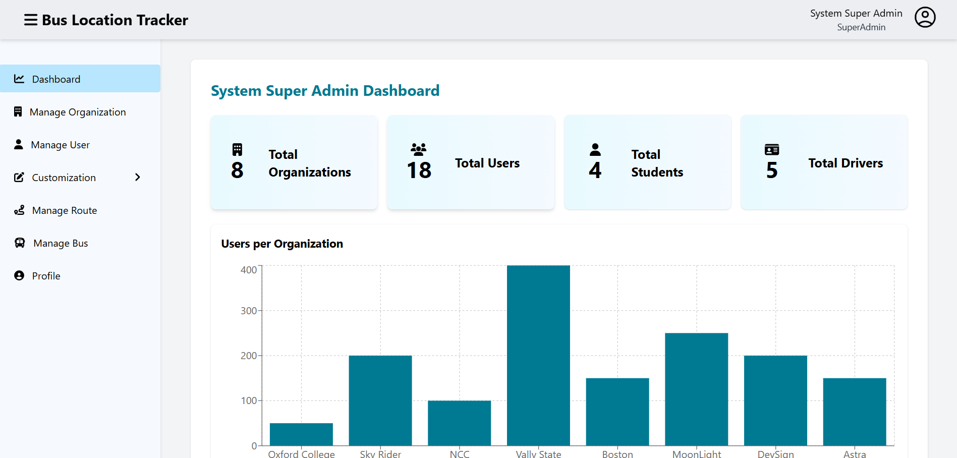 Provides real-time bus locations for users and a full CRUD dashboard to manage data for the mobile application.